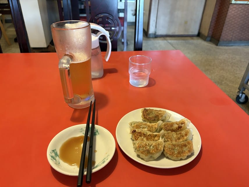 ここの餃子はとても美味しい。暑い日だったので、少量しか飲めないビールも旨い。