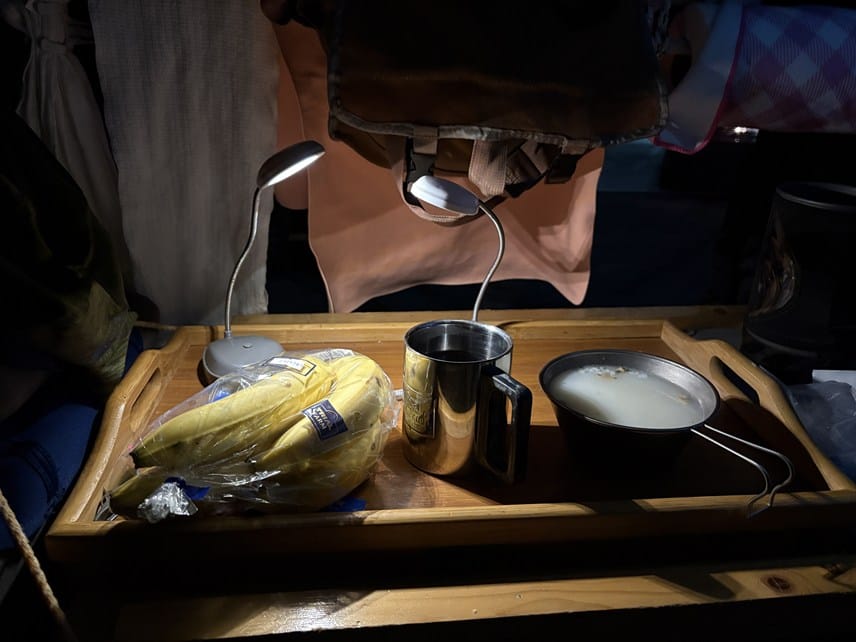 簡単な朝食を車内ですませる。