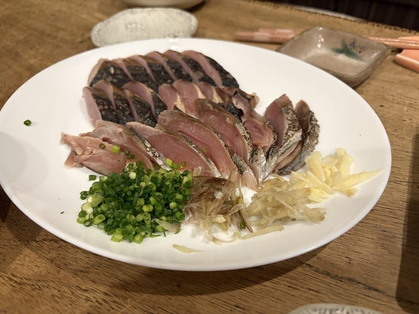 夕食はネリゴの刺身と、カツオのタタキ。美味しかった。