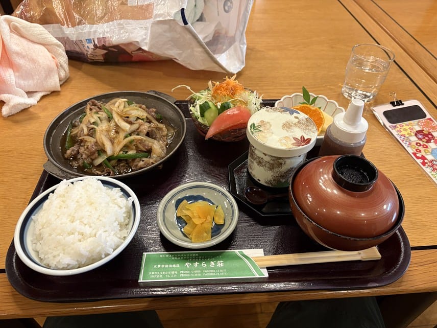 スーパーで買い物後、温泉へ。温泉センタ併設のレストランでいつもの焼き肉定食を食べる。