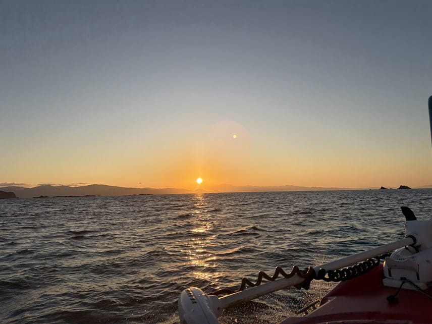 いつものG経由で沖のポイントへ。朝日に大漁を祈念する。