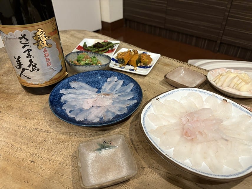 久しぶりのヒラメにヤガラの刺身を堪能した。焼酎のお湯割りを1杯だけ飲んだが、今回は悪夢を見なかった。
